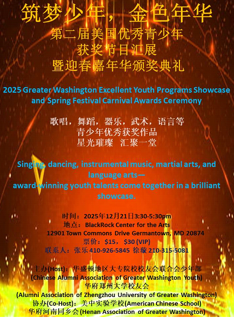 这不仅是一场才艺展示,更是一场青春的礼赞。华府观众将在这里感受到年轻力量的蓬勃生机,见证青少年用智慧、努力与热情照亮前行之路。