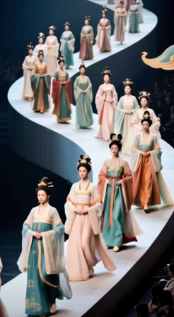 元并蓄的时代气象。最终,全体演员共同亮相,以群像方式呈现唐代服饰的丰富面貌,展