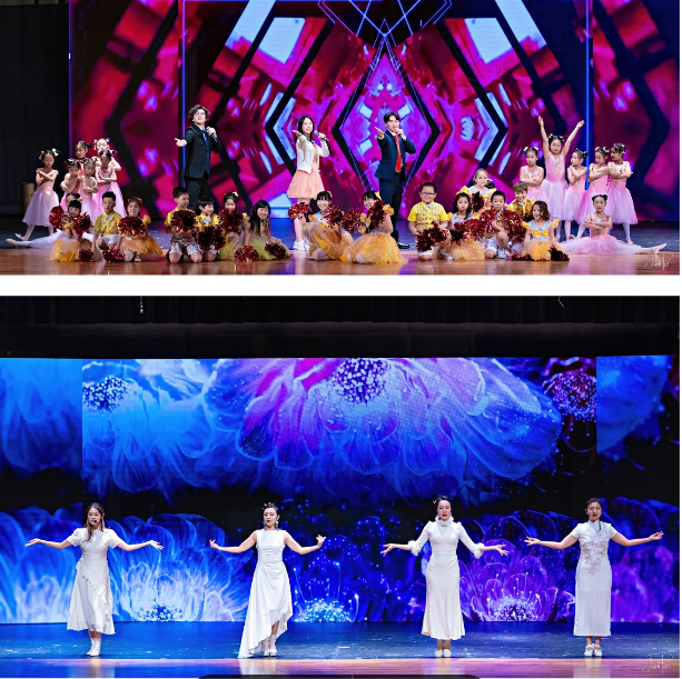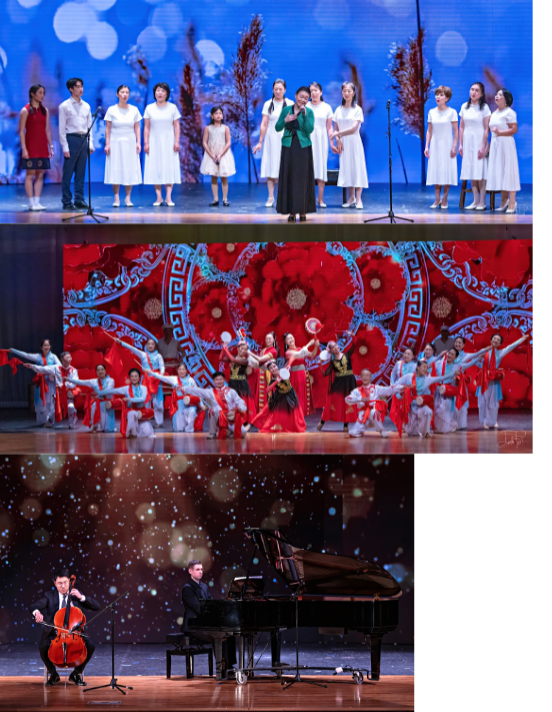校友群体多元融合、积极向上的精神风貌。舞台上,歌声悠扬、舞姿翩跹,器乐演奏与合