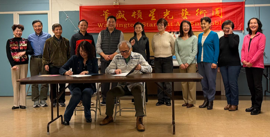 为表达对此次签约的重视,星光艺术团庄严地悬挂起团旗。全体理事会成员整齐地