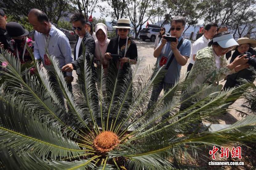 4月9日,海外华文媒体代表观看开花的攀枝花苏铁。王磊 摄