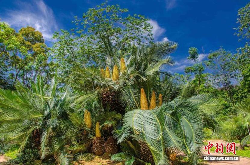 【美国华视四川讯】在四川攀枝花,“千年铁树开花”的民间俗语被打破。春日里,金沙江干热河谷间,近40万株攀枝花苏铁竞相绽放,金黄纺锤状的雄花挺立如塔,棕褐绣球状的雌花圆润似球,构成世间罕见的生态奇观。