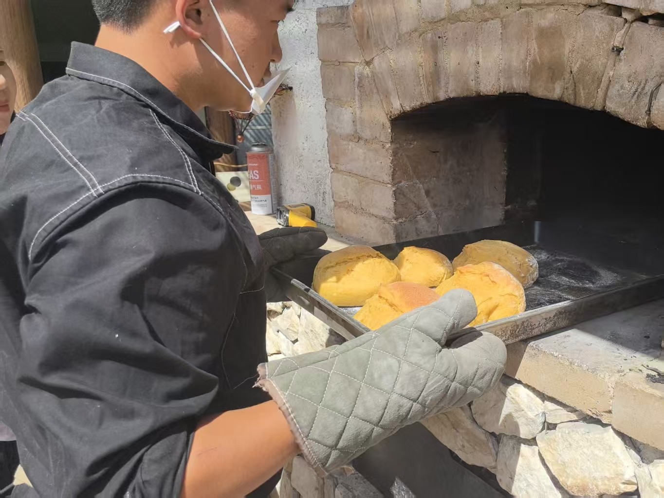 隔壁的窑烤面包工坊内,炭火烘烤的麦香弥漫四溢,刚出炉的窑烤面包外皮酥脆、内里松软,带着炭火独有的烟火香气,是乡村里最质朴的美味。媒体代表们亲手接过热腾腾的面包,细细品尝,在麦香与炭火香中,感受田园生活的纯粹美好。