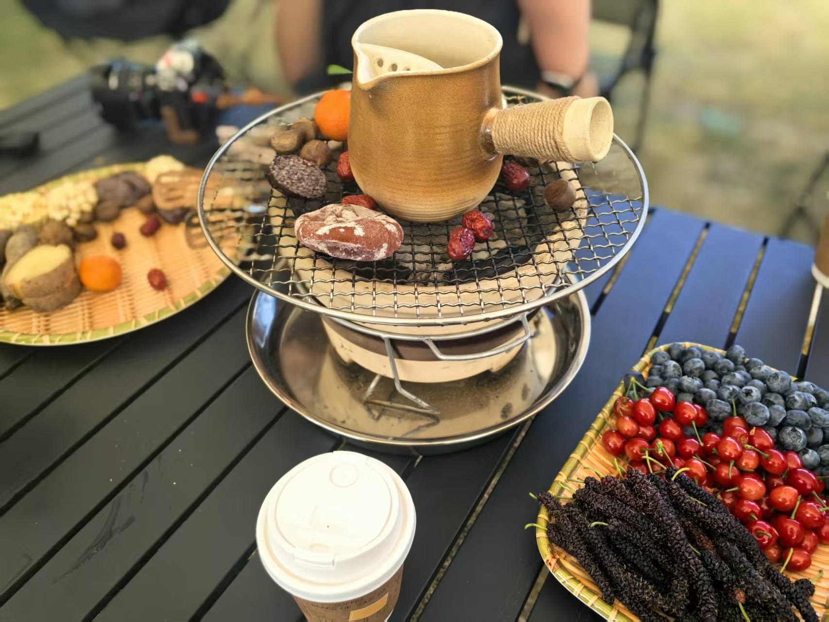 午后时光,媒体代表们体验惬意的围炉煮茶。暖炉上热茶翻滚,搭配着坚果、干果与特色小吃,大家围炉而坐,喝着饮品、聊着趣事,在氤氲茶香中畅聊乡村发展,彻底沉浸在昔格达村悠闲自在的乡村氛围里。帐篷遮去暖阳,围炉慢煮时光,传统茶事的诗意,与乡村田园的静谧风光相融,勾勒出一幅安逸祥和的生活画卷,让远道而来的海外华文媒体代表们倍感温馨。