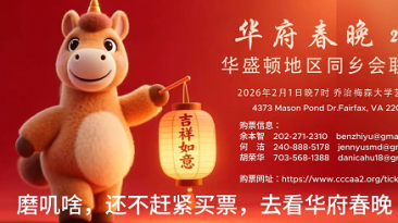 一年一度的《华府春晚》将于 2026年2月1日晚上7点 在 乔治·梅森大学艺术中心 隆重举行。作为大华府华人共同迎接新春的文化盛事,《华府春晚》不仅是一场节庆联欢,更是一场凝聚文化记忆与时代情感的艺术相聚。走过二十余年的岁月,今年的《华府春晚》又将为观众带来怎样的华彩乐章呢?...