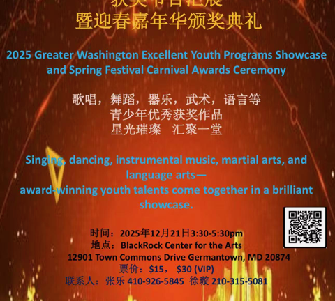 2026《同心欢乐》新年晚会暨美食品鉴会将于2026年1月3日在马里兰州 GaithersburgHigh School 隆重登场。作为大华府地区历史悠久、影响深远的亚裔品牌文化活动,《同心欢乐》自创办以来,已成为亚裔社区每年翘首以盼的节日盛会。晚会不仅集中展示华裔社区的文化魅力,也汇聚韩裔、印裔、越南裔等多族裔力量,共同谱写团结与共融的文化新篇章。多年来,《同心欢乐》凭借高水准的艺术呈现、多元丰富的节目内容与浓厚喜庆的节日氛围,赢得了华府观众的广泛喜爱与高度赞誉。 令人振奋的是,2026年《同心欢乐》将由专业导演、制片人马海艳女士担任总导演。...